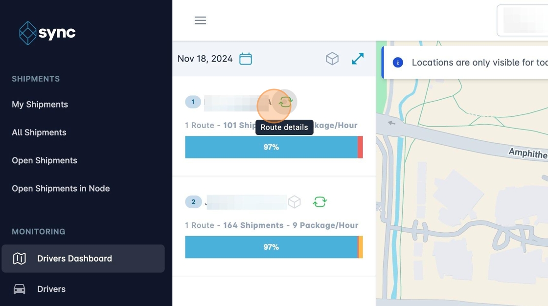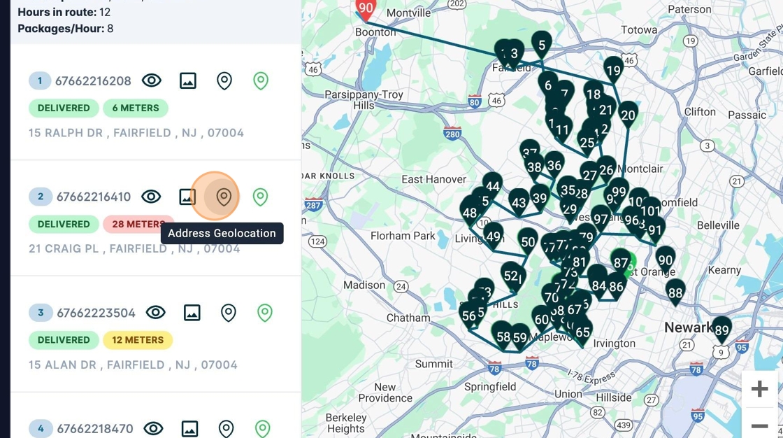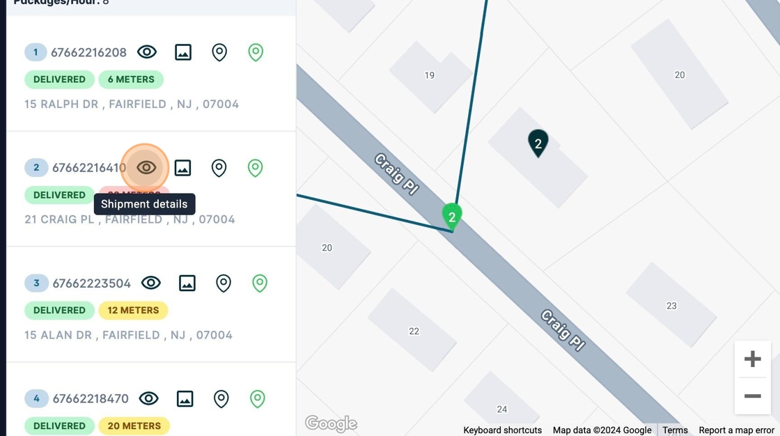 6. Using the buttons on each shipment you can view individual details. For example, if you want to see the shipment address geolocation you can click on this icon: