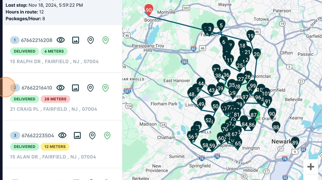 5. Here you will see all the shipments that were in that route. The dashboard will indicate if the shipment was delivered, failed or if it is still pending.