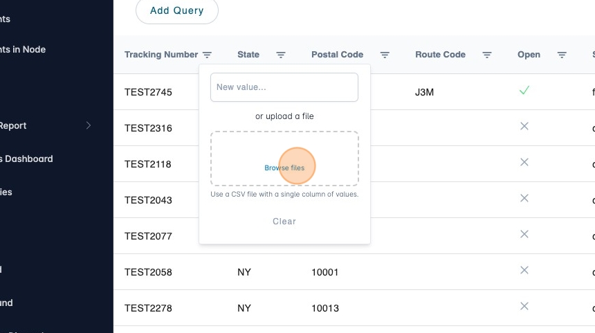 - Draw and drop a file or click on "Browse Files". Upload a CSV with a single column.