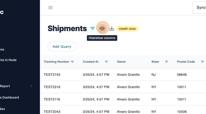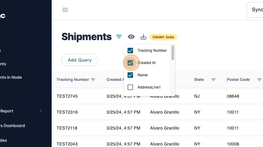 Dynamic TableShow/Hide ColumnsShow/Hide Columns Click here. Click the "Created At" field. Click the "Name" field. Click anywhere to close the modal.