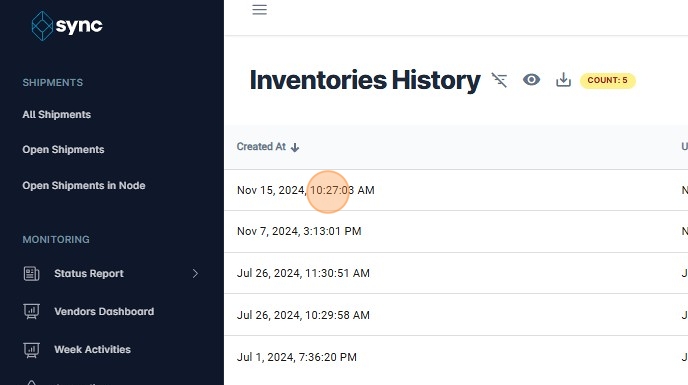 2. Click on "Inventories" on the sidebar to access to this page.