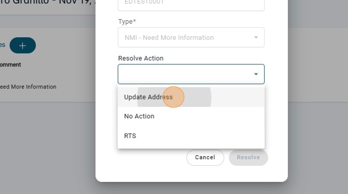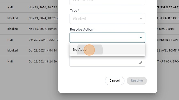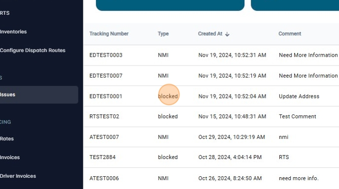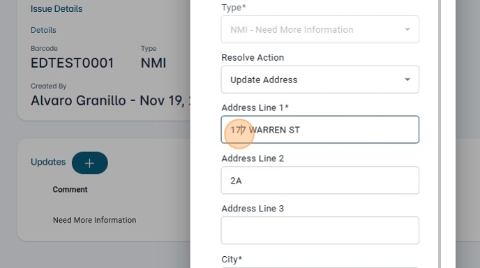11. Once the "NMI" Issue is resolved with the Action of "Update Address" another issue will be created instantly, It a issue of type "block"