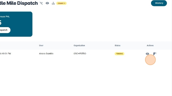 - In the table, you will see the active middle mile dispatches. In case you want to see their summary, you can click the eye button, which is going to take you to the summary page. In case you want to keep scanning into the dispatch, you can click the scan icon.