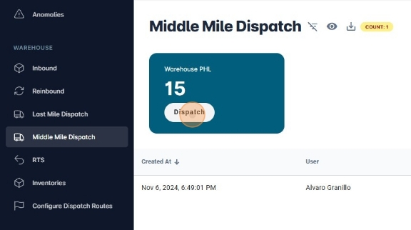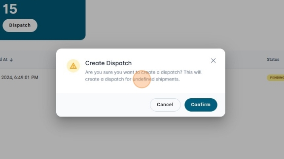Dispatch, a confirmation dialog will appear. ClickConfirmto create the middle mile dispatch.