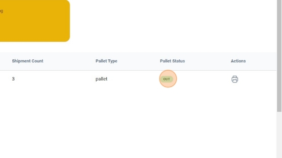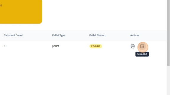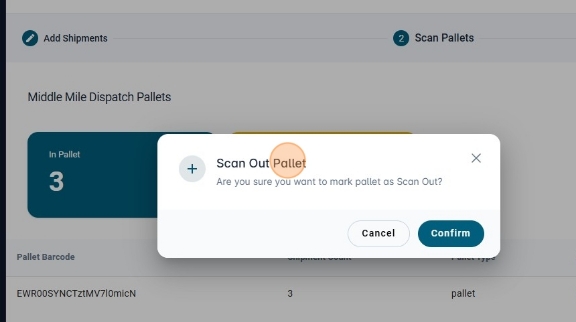 - Once the pallet has all the shipments that you need, you can mark the pallet as scanned out. To do so, you need to click the