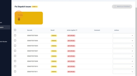 - The third phase is the "Fix Dispatch Issues" phase. If the middle mile dispatch didn't have any issues, this phase will be empty. Otherwise, you need to fix all the issues in order to finnish the dispatch. An issue here means that there is a shipment that was added to the dispatch that was not assigned to any pallet. There could be plenty reasons why a shipment was not assigned to a pallet.