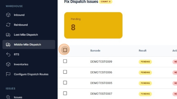 A middle mile dispatch can be created if there is at least one shipment in your Warehouse with the warehouse status. You also need to configure the dispatch route codes in the system settings so that the system can automatically infer which shipments are going to which middle mile station.