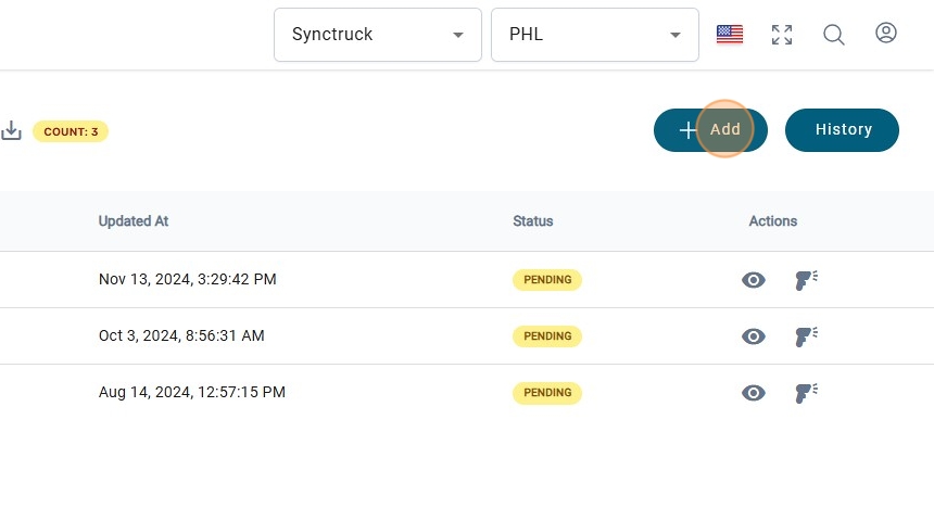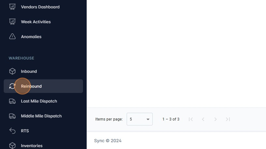 1. Navigate to https://platform.syncfreight.com/#/warehouse/reinbounds