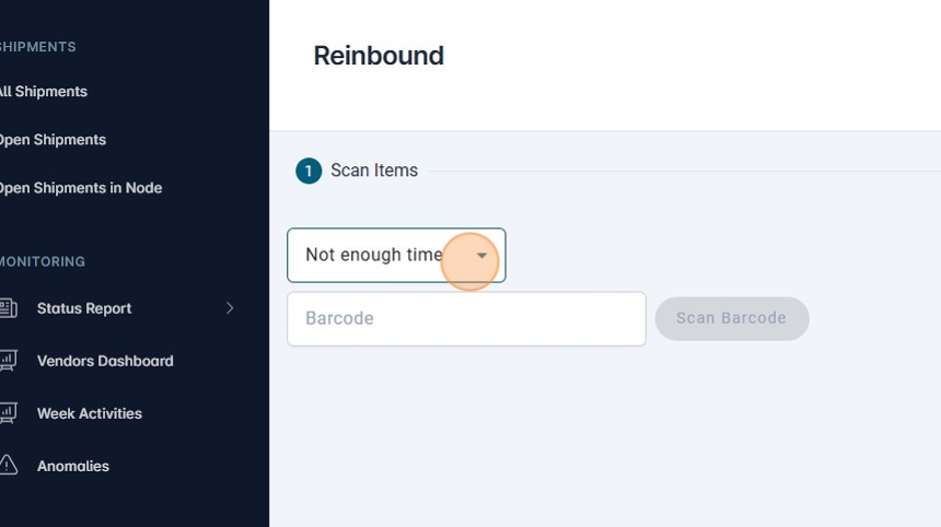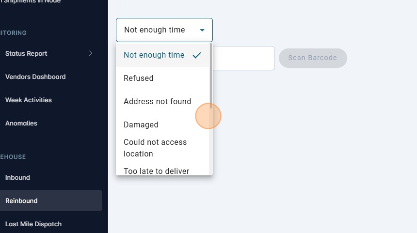 5. Selec the reason to reinbound.
