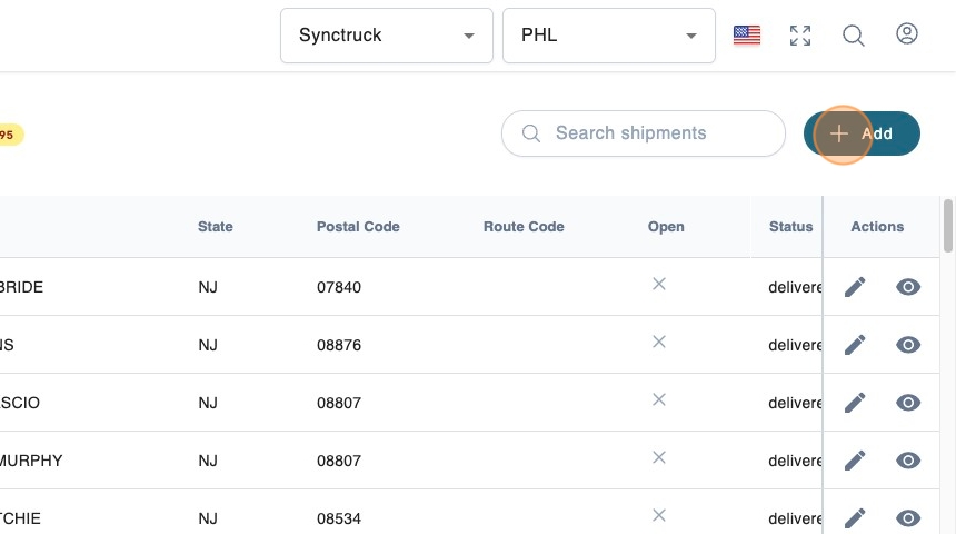Navigate to [https://platform.syncfreight.com/#/shipments]