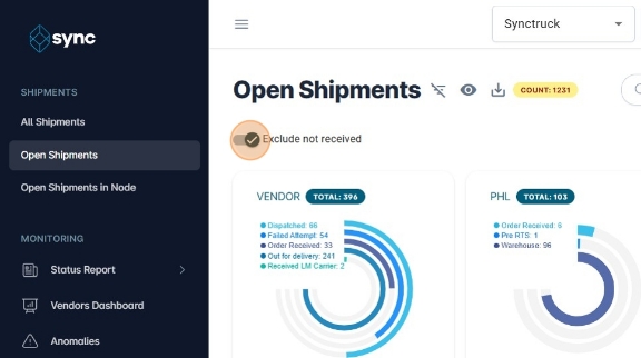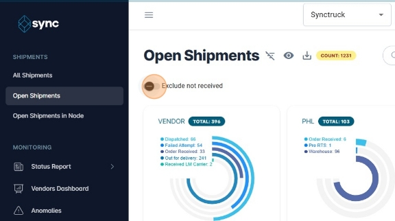 Navigate to https://platform.syncfreight.com/#/shipments/open